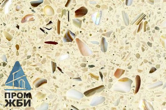 В остальном раствор для изготовления плит терраццо похож на бетонный. В качестве связующего компонента выступает портландцемент белого или серого цвета, для более богатой палитры используют также пигменты, которые вносят в массу.